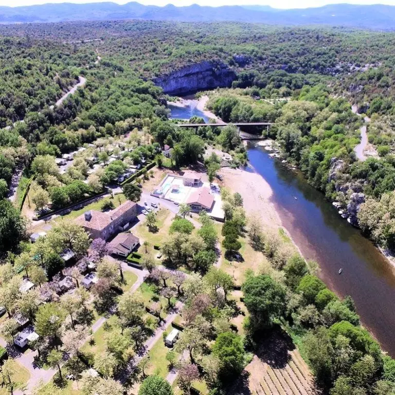 Der Campingplatz Mazet-Plage liegt am Rande des Waldes Bois de Païolive am Ufer des Chassezac.