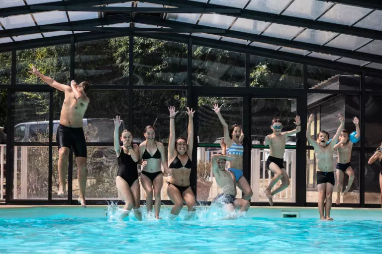 Der Campingplatz bietet Ihnen einen überdachten und beheizten Pool, ein Planschbecken für Kinder sowie einen Wellnessbereich mit wohltuenden Massagedüsen – perfekt für entspannte Nachmittage. Ein Multisportplatz, ein Spielzimmer mit Tischfußball und Billard sowie aufblasbare Spielstrukturen sorgen für jede Menge Freizeitspaß. Und das Beste: Der Campingplatz ist autofrei. Sie parken nahe des Schwimmbads oder auf einem öffentlichen Parkplatz 400 m entfernt – so können Kinder sicher spielen und Sie entspannen ohne Verkehrslärm.