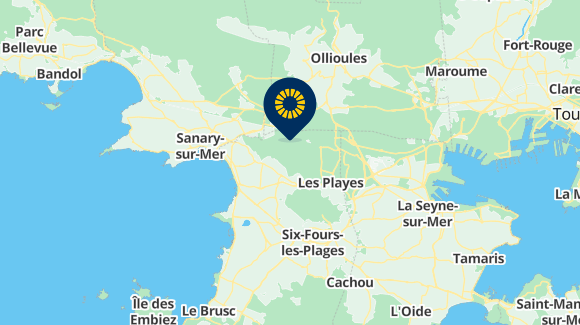 RouteVon Lyon kommend : Ausfahrt A7 mit Anschluss an die A50, Ausfahrt Nr. 12 Bandol oder Nr. 13 La Seyne Ouest / Six Fours / Ollioules
