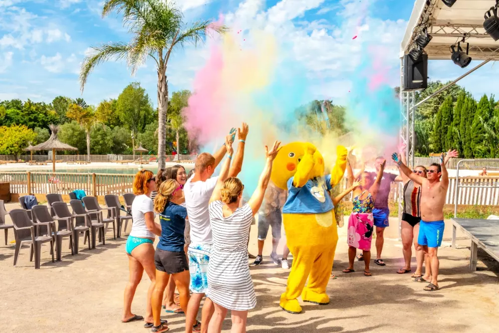 Wir haben für Sie auch innovative Aktivitäten vorbereitet! Unser fröhlicher Mizzy moderiert den Mizzy Club mit Liedern, Choreografien, Kuscheltieren, Malvorlagen und vielem mehr, um die Kleinen zu begeistern. Unsere Maeva-Teams bieten Ihnen "Jumpies" an - Campingtänze, die während Ihres Urlaubs unverzichtbar sind! Und für Familien haben wir farbenfrohe Aktivitäten wie COLORIRES. Kennen Sie das noch nicht? Es ist der farbenfrohste Sportkurs Ihres Urlaubs mit markierten Wegen, lustigen Herausforderungen und einem bunten Farbenregen.