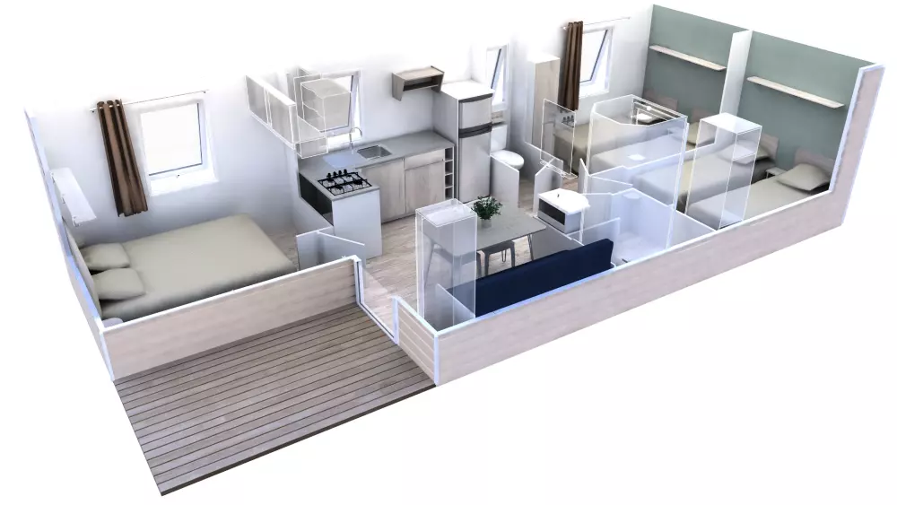 Vor Ort stehen Ihnen Annehmlichkeiten zur Verfügung: kostenloser WLAN-Zugang an der Campingbar, ein Lebensmittelgeschäft mit Brot- und Gebäckservice für Naschkatzen und eine Cocktailbar.