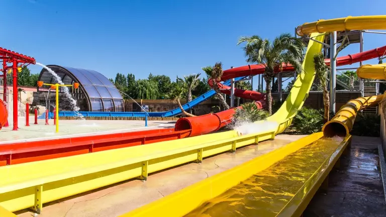 Der beeindruckende Wasserkomplex erstreckt sich über 10.000 m² und verfügt über 2.000 m² große Pools in einer tropischen Atmosphäre – der größte seiner Art auf einem Campingplatz in Europa. Kinder können sich im beheizten Innenpool vergnügen, während Erwachsene im Wellnessbereich entspannen oder die aufregenden Wasserrutschen genießen.