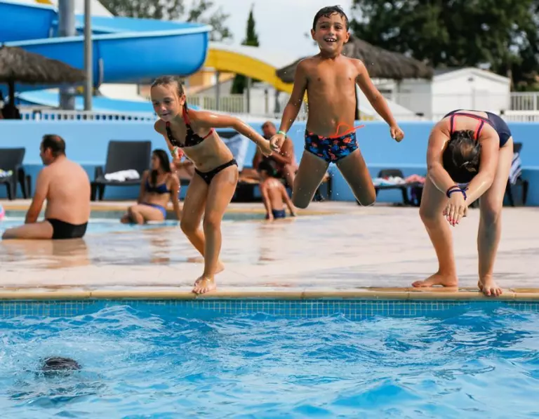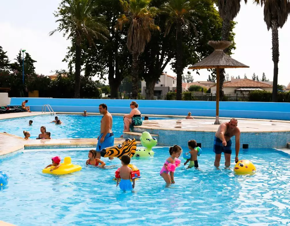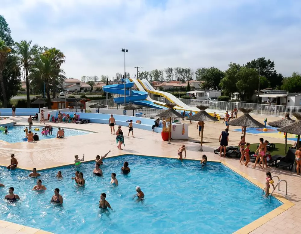 Tauchen in ein aquatischer Raum in beheizten Außenbereichen, bestehend aus mehreren Pools, die an alle Altersgruppen und Wünsche angepasst sind. Die kleineren haben Spaß in den spielerischen Pools, während die größeren werden Wasserspiele, Dias und Pentaglises genießen. Ein Swimmingpool ist auch für Schwimmer geeignet. Und zum Entspannen erwartet Sie ein großes Solarium mit vielen Liegestühlen unter den Sonnenschirmen!