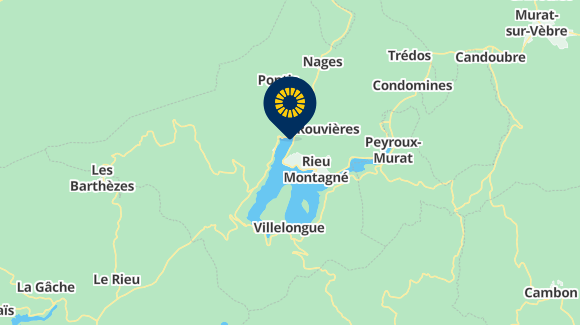 • Coming from Millau, take exit 46, towards Saint-Affrique, Lacaune, Nages then _Nages - Lac du Laouzas_.