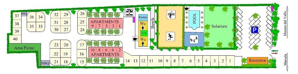 Von Trapani: Nehmen Sie die SP21 Richtung Marsala. In der Nähe des Flughafens fahren Sie auf der S.V. (Autobahn). In der Nähe des Krankenhauses biegen Sie rechts auf die SS188 ab. In Piazza Caprera fahren Sie weiter auf der SS115 Richtung Mazara del Vallo und biegen an der dritten Ampel in der „Contrada Bambina“ links ab. An der nächsten Ampel biegen Sie rechts ab. Lilybeo Village befindet sich auf der linken Seite.