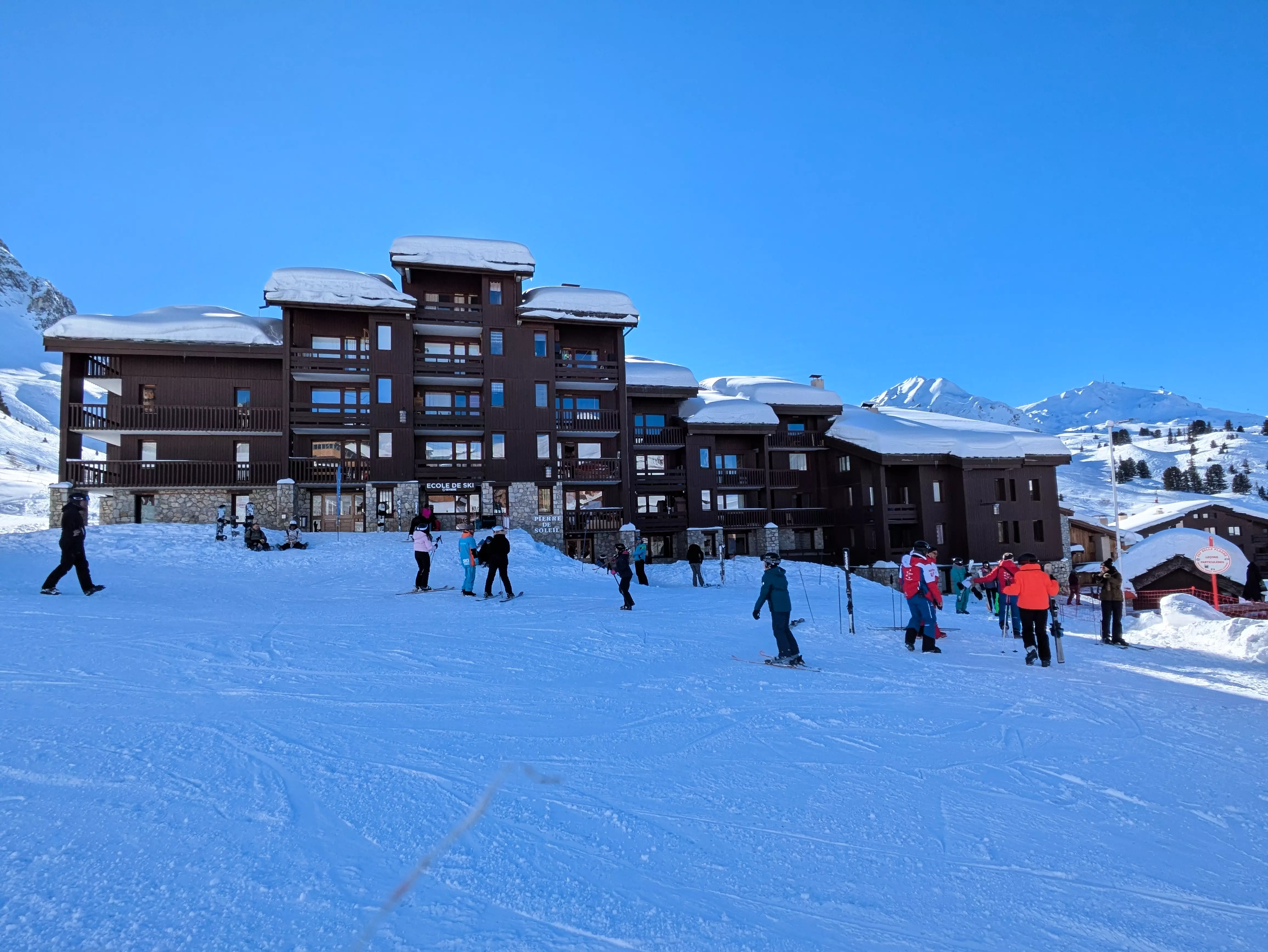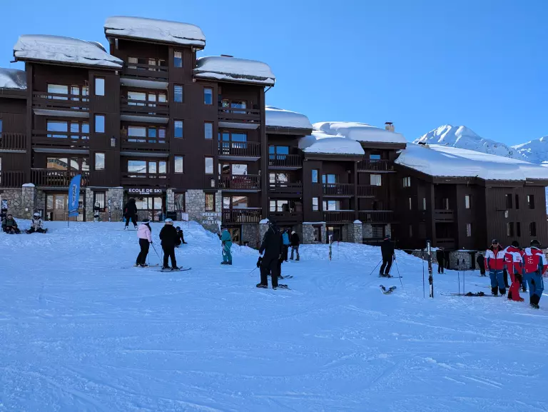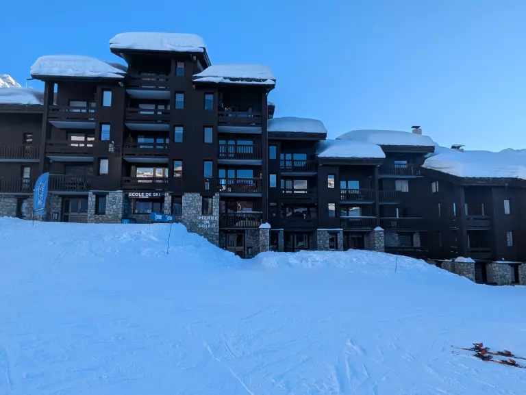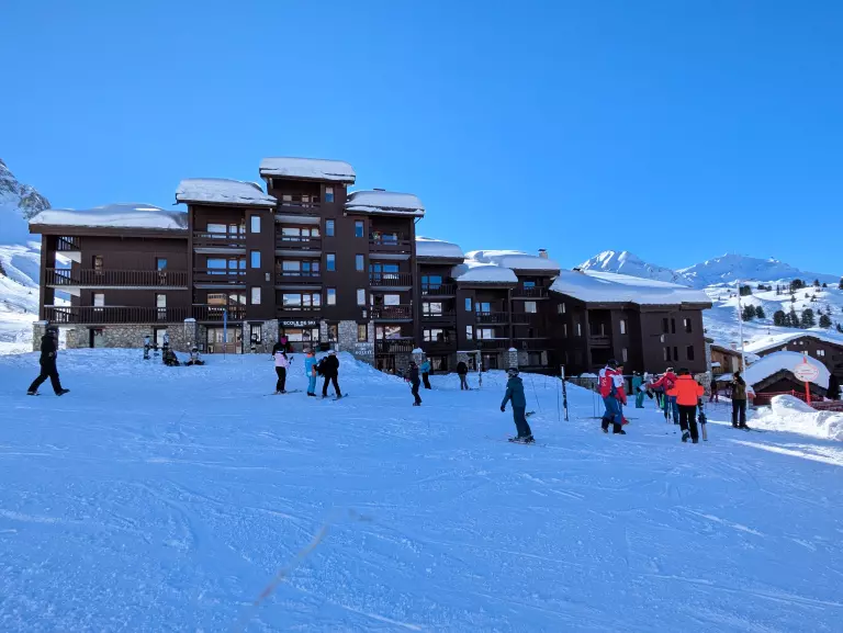 Entdecken Sie die Résidence Pierre de Soleil – eine charmante Ski-in/Ski-out-Residenz im autofreien Ferienort Belle Plagne auf 2.050 m Höhe, eingebettet in eine traumhafte Bergkulisse.